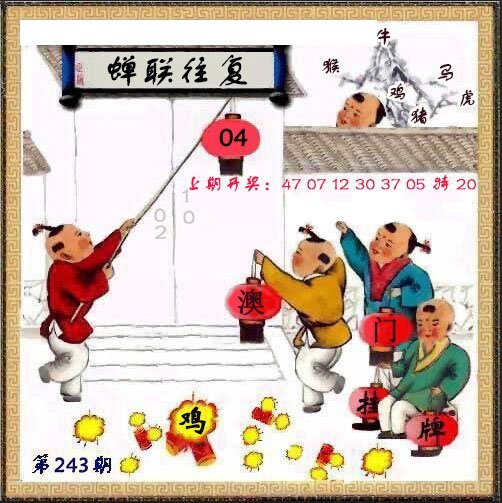 243期挂牌《蝉联往复》 解释:意思是接连不断地反复重演。出自梁启超《新民说》。 解料:合肖龙蛇猴鸡狗猪。挂:04鼠,鼠冲马,爆:鸡,鸡冲兔。 七肖:鸡龙蛇狗鼠马兔 五肖:鸡龙蛇狗鼠 四肖:鸡龙蛇狗 三肖:鸡龙蛇 二肖:鸡龙 一肖:鸡 |